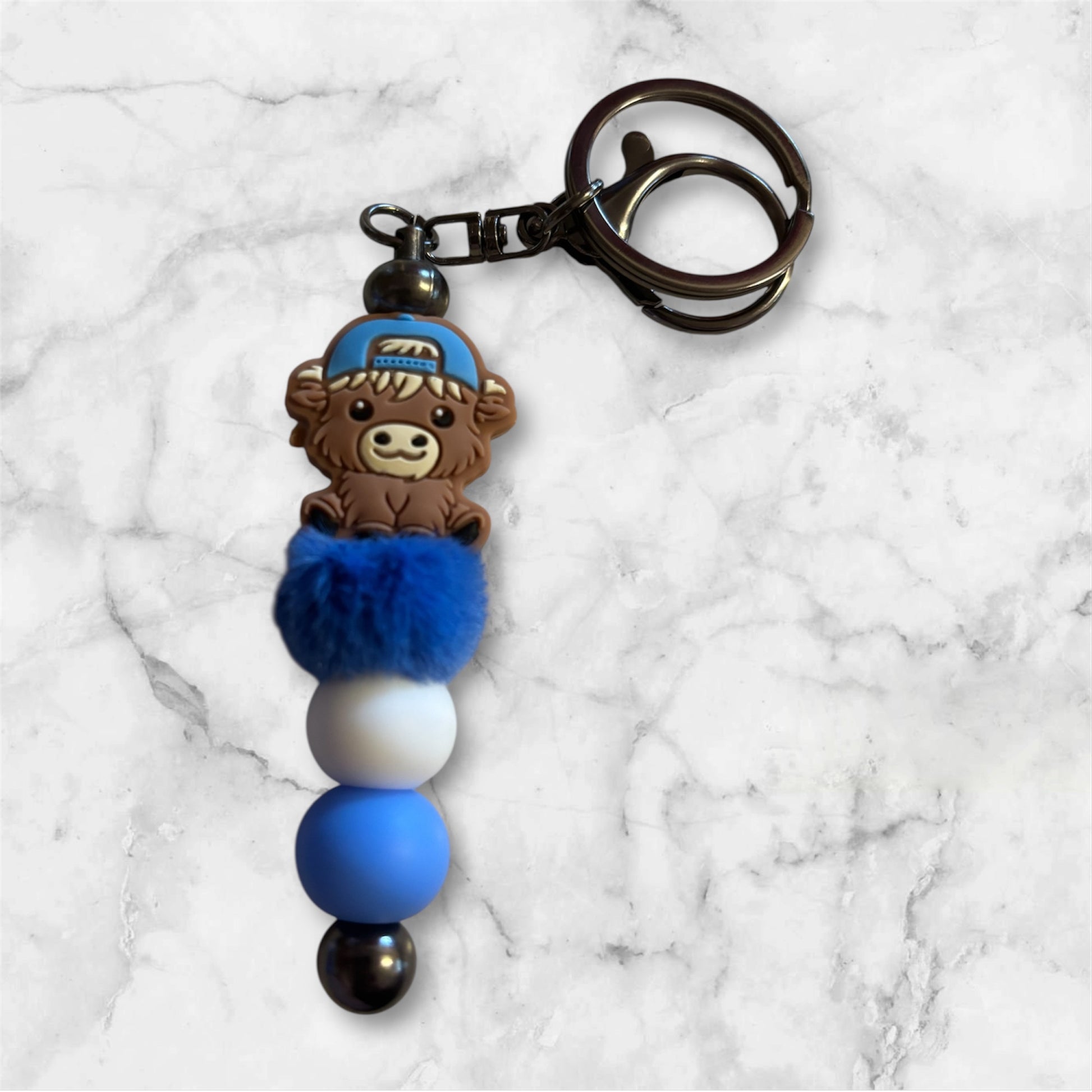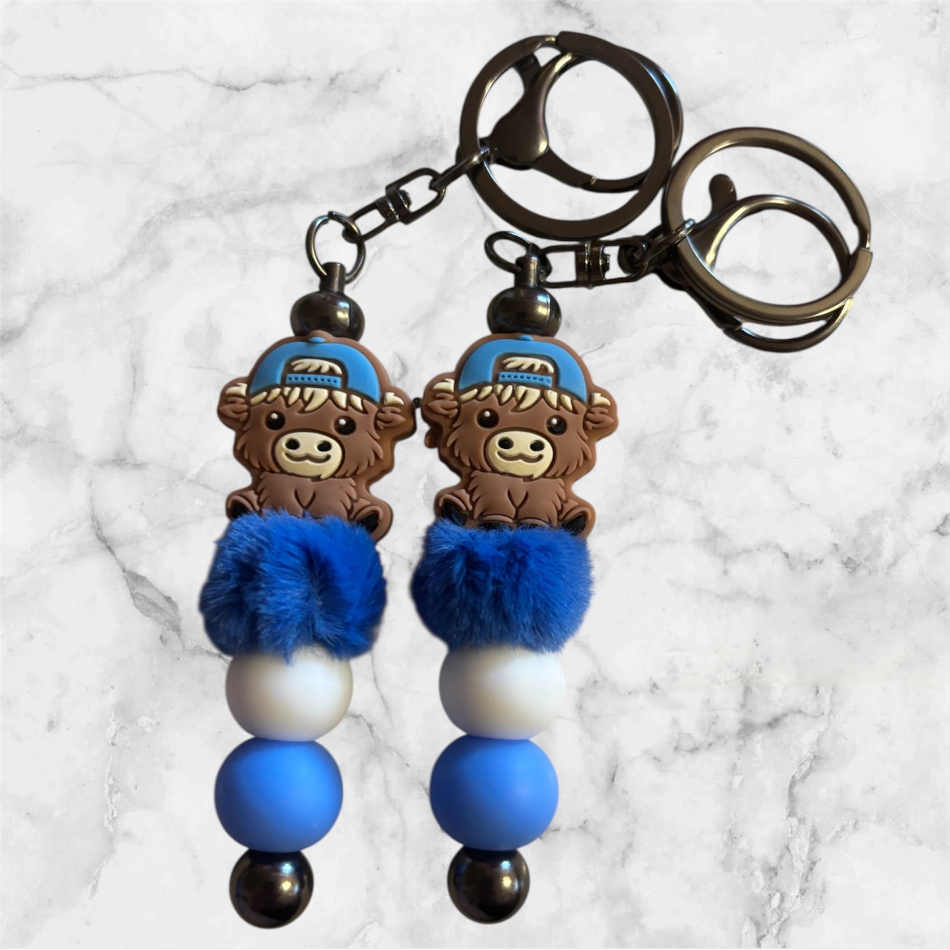 💙🐮Add some country charm to your everyday with this adorable Highland cow keyring! Featuring a cheeky cow in a blue cap, fluffy pom pom, and soft silicone beads in matching blue and white tones, it’s the perfect mix of fun, cute, and practical. Clip it to your keys or bag for a pop of personality wherever you go!🐮💙